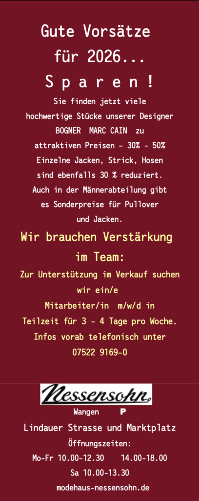 Modehaus Nessensohn in Wangen im Allgäu
